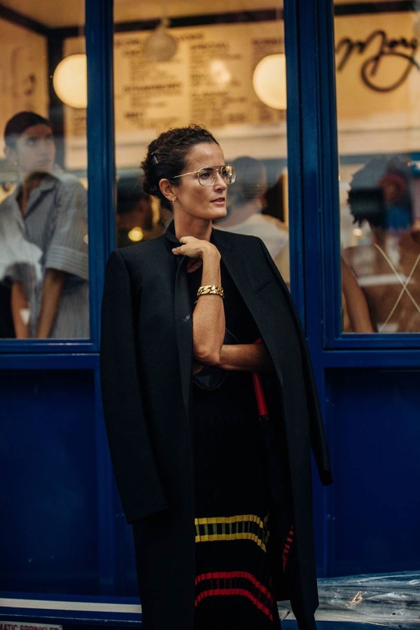 当然,如果你觉得基本款式的设计太过单调,不妨像博主Sabina Socol一样在腰间系一条腰带或是腰包,凸显腰部线条的同时也能让造型更有层次感。