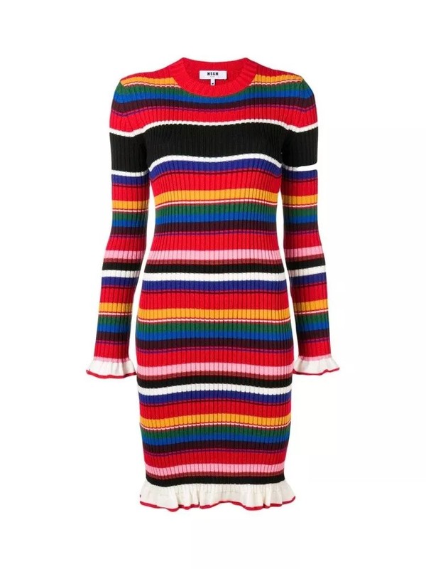 当然,除了简约的纯色设计,将拼色设计、打结等细节运用到毛衣裙中也可以带来不同的惊喜,用色彩为造型注入更多趣味性。