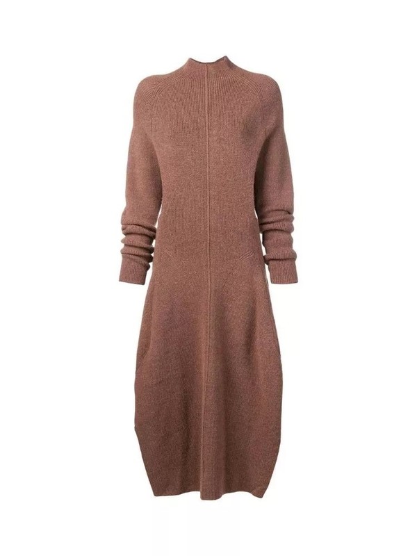 毛衣作为秋冬季节保暖又实穿的单品,将裙摆长度拉长,作为毛衣裙,同样具有相同的效果,甚至通过长度、剪裁的不同,毛衣裙也可以变幻出不同的风格。