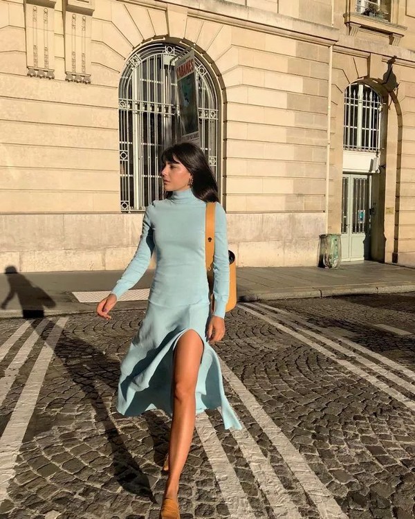 毛衣裙的细节设计不仅可以为造型起到点睛的效果,还可以让你的身材扬长避短。在十月份举办巴黎时装周期间,场外街头有不少博主选择了Jacquemus的毛衣裙,开叉的设计、露肩的细节,柔软的面料包裹着性感阳光的女人味,弥漫着法国的氤氲之气,也调动出法式风情的奥秘。