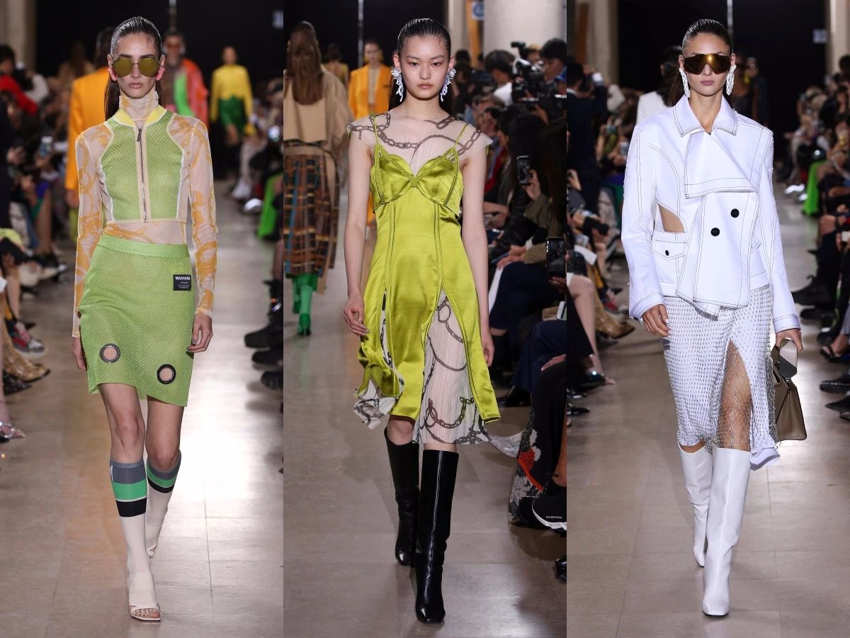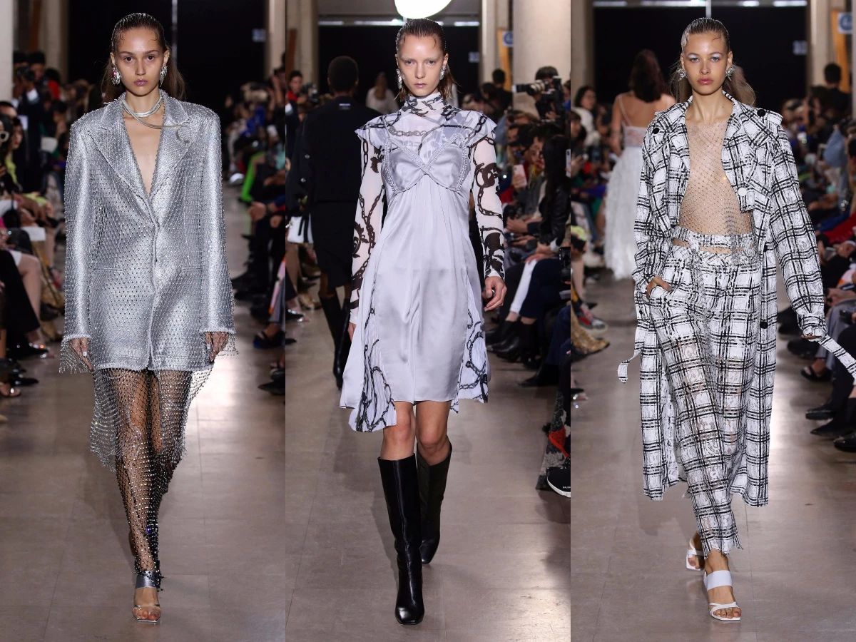 MASHAMA 2020春夏系列中,柔软金属皮肤质感的手工渔网水钻穿插套系,如未来躯体外壳般坚硬而轻盈。