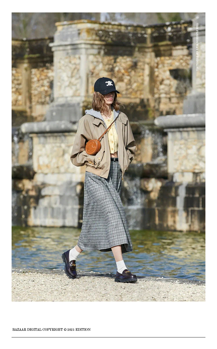 搭上棒球帽、米色夹克和格纹裙,你也随时可以变身学院风CELINE女孩。