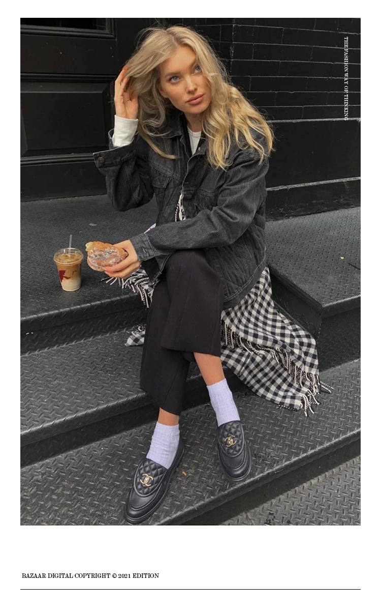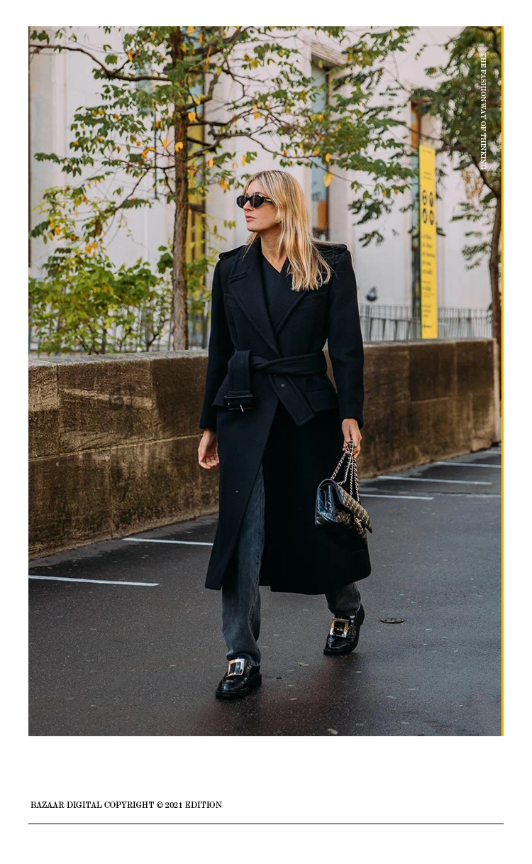 #乐福鞋+金属元素复 古 英 伦 的 女 学 生说到乐福鞋,Prada家的这双爆款已经被各路明星带货,今年的秋冬爆款鞋排行中,它称第二,就没谁敢称第一。