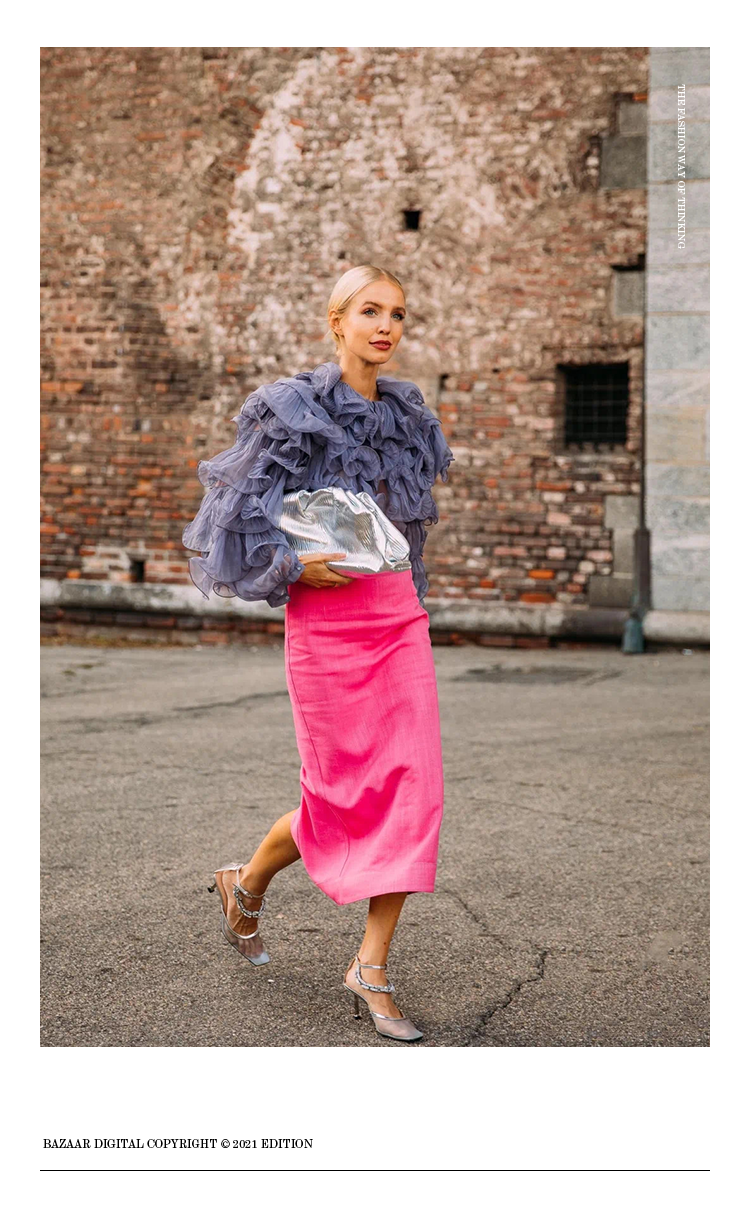 #高跟鞋+金属元素显 脚 细 的 财 阀 千 金上面Rose给我们示范的金属头高跟鞋,保持端庄优雅的同时,无疑给单调的纯色增添了一抹亮点。即使穿着正装,也难以掩盖你的时髦。