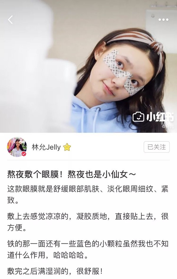 有黑眼圈困扰的宝宝们在抹眼霜之前可以像林允这样先敷个眼膜,这样效果会更好,舒缓眼部肌肤的同时淡化眼周细纹