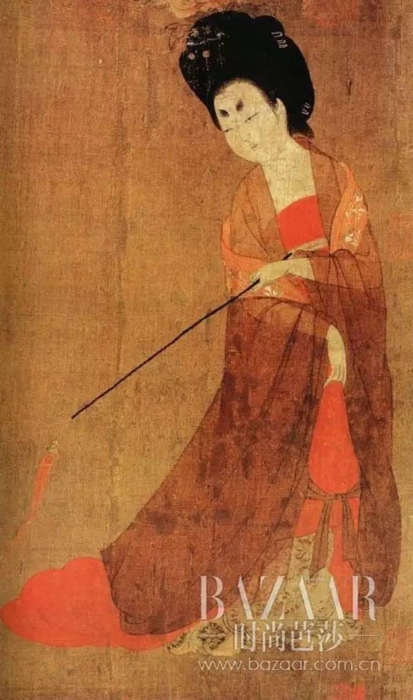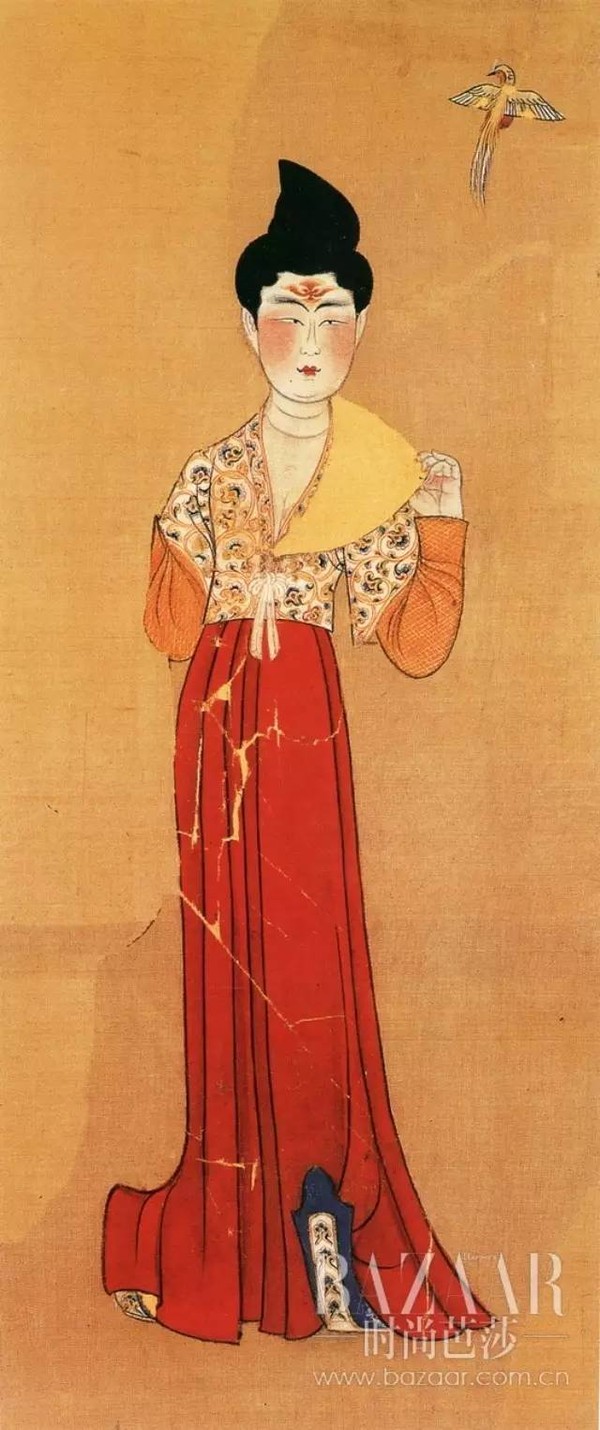 唐末的裙襦大袖但说了这么多,你就会发现,那张被视为唐朝代表的《簪花仕女图》反而一直没有出现。其实这张图在业界早有定论,总之以五代为轴心不会超过唐末。也就是说,这幅图要是被拿来讲服饰,是个完全没有代表性的东西,尽管它是如此有名,以致于有半数以上的唐代影视服装设计都是以它为蓝本。
