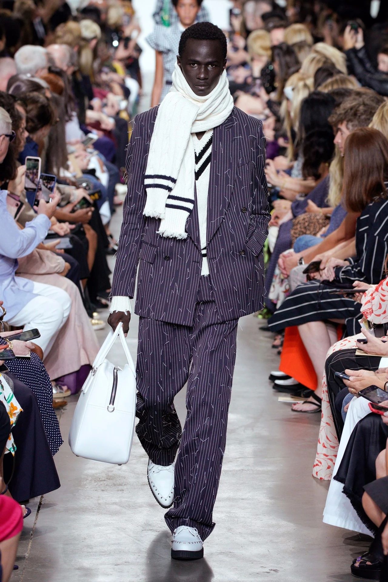 不仅如此,本季的男装也同样别出心裁。维西格、波菱格与条纹等元素尽情碰撞,搭配牛津鞋、厚底凉鞋、马鞍包等经典单品,打造了别具一格的复古潮流。除此之外,更有针织衫、运动裤、西装的混搭,此次MICHAEL KORS COLLECTION将运动风、美国复古风、英伦风巧妙结合,在大胆的尝试中缔造出了“雅痞绅士”的别样效果。