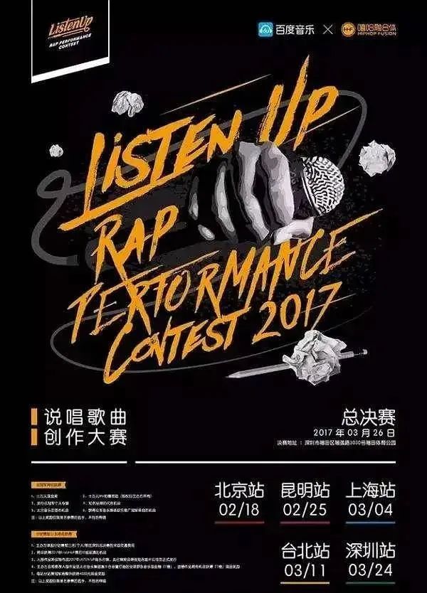 不太关注说唱的朋友们可能不知道,《说唱听我的》其实是由以前的地下说唱赛事《Listen up》演变而来,这个被誉为说唱界“黄埔军校”的地下rap比赛,首届创立于2016年,原名“Listen Up说唱歌曲创作大赛”