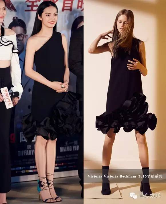 大姚的连衣裙来自Victoria Victoria Beckham 2016早秋系列,比起模特脚上的黑色短靴,大姚的绑带凉鞋更活泼更有夏天的感觉